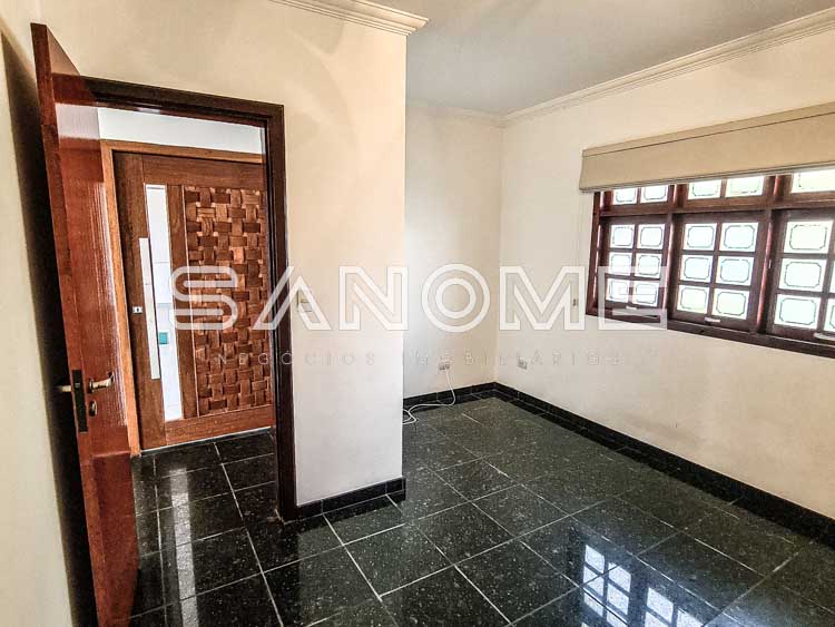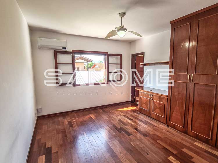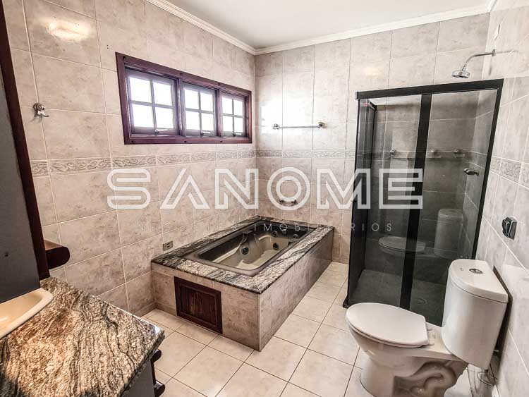Piso superior: Banheiro social + 4 dormitórios (2 suítes – master com closet e hidromassagem).