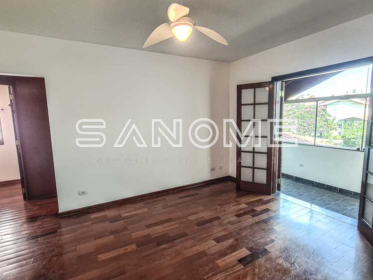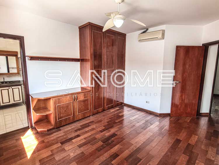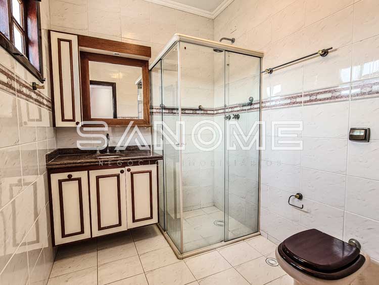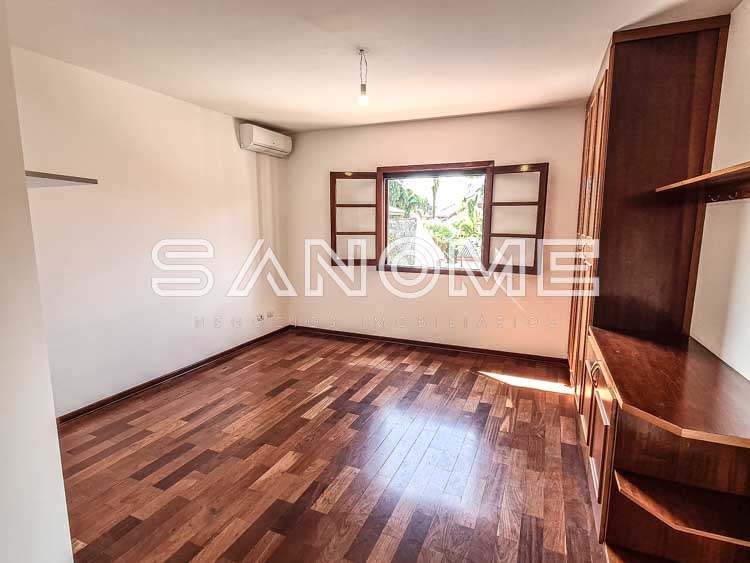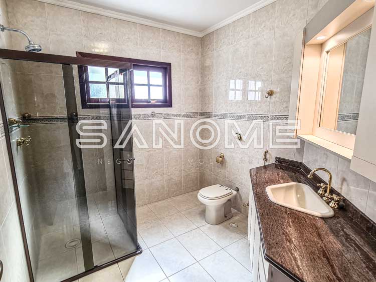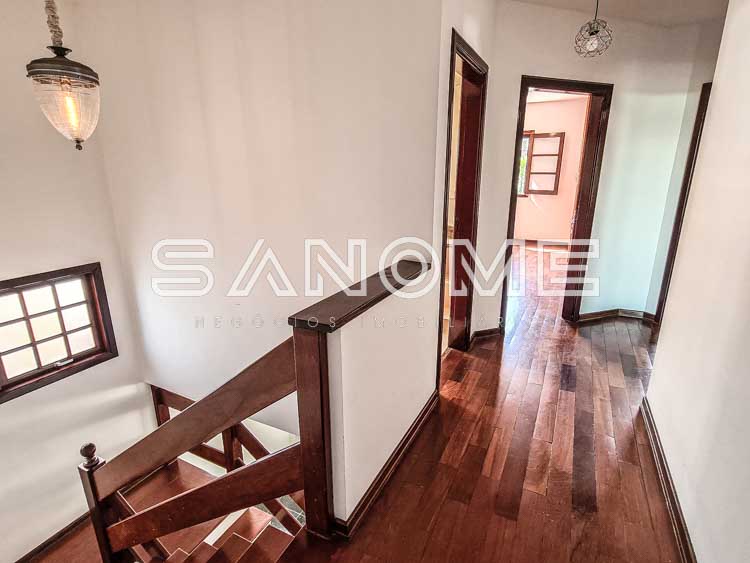 Piso superior: Banheiro social + 4 dormitórios (2 suítes – master com closet e hidromassagem).