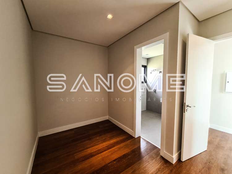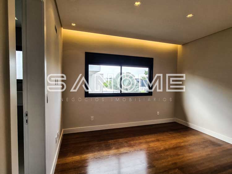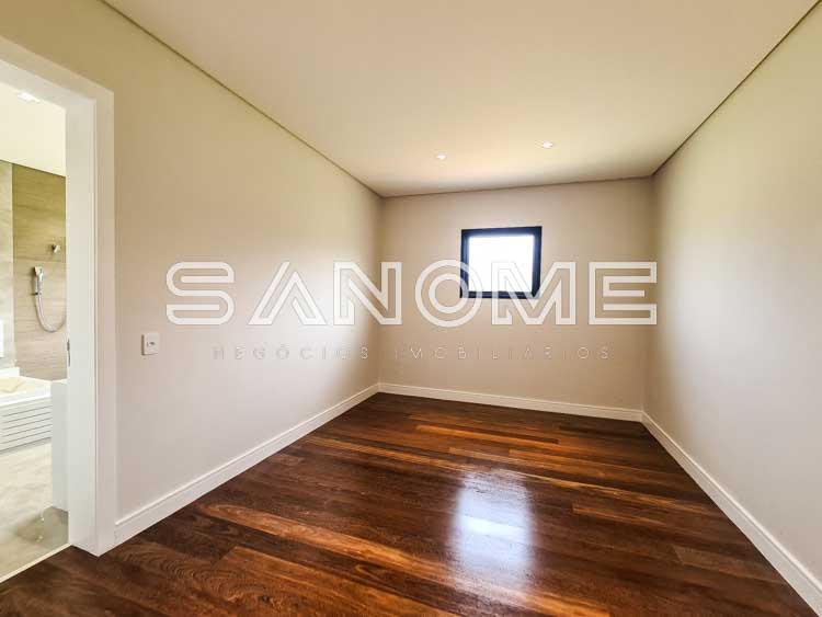 Piso superior: Ampla sala íntima com varanda, Suíte master com sala de banho, closet, varanda e hidromassagem, 2 suítes com varanda e closet, e 1 suíte com closet.