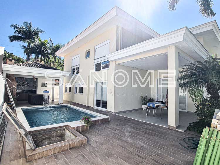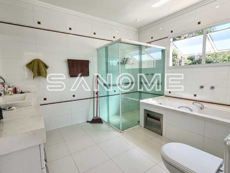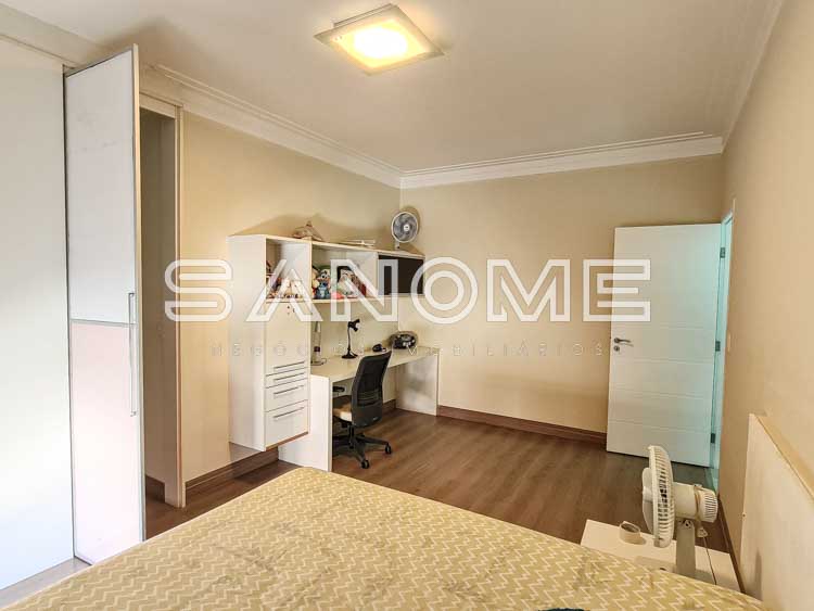 Piso superior: 3 suítes (master com closet, varanda e hidromassagem).