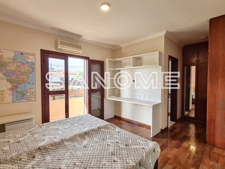 Piso superior: Sala íntima entre os quartos + 3 suítes completas (master com closet e hidromassagem).