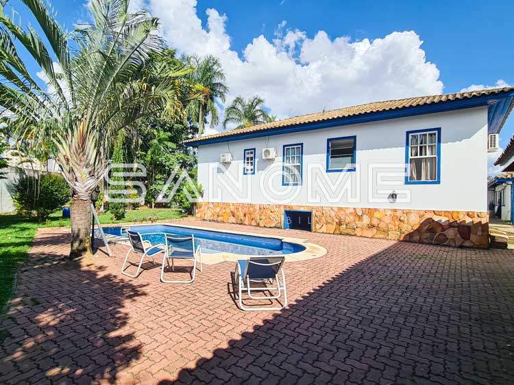 Térrea, 4 suítes, Salas integradas, Pé direito alto, Lavabo, Escritório, Sala de TV, Cozinha integrada, Área de serviço, Lavanderia, Amplo quintal gramado com árvores frutíferas, 2 banheiros de lazer externos, Sauna seca e Piscina.
