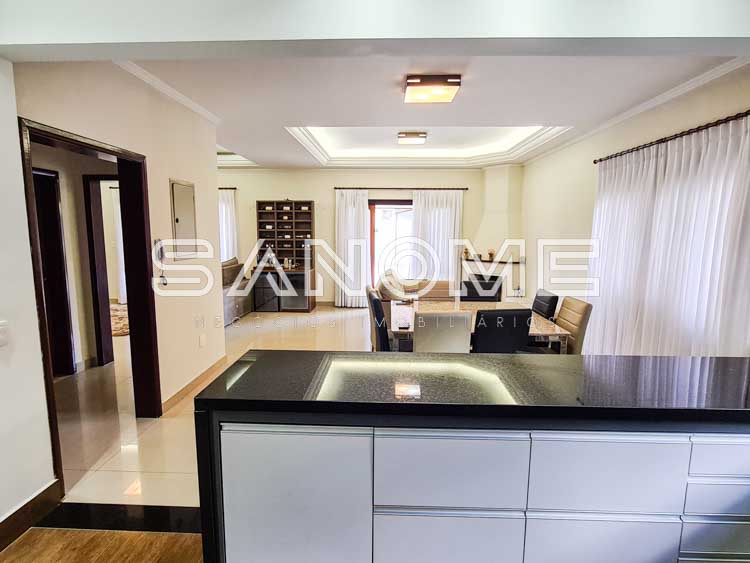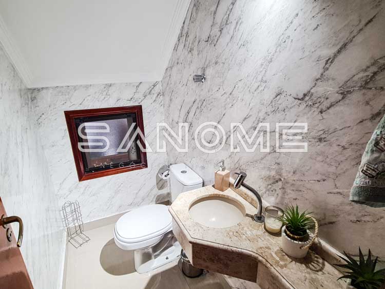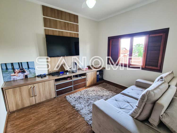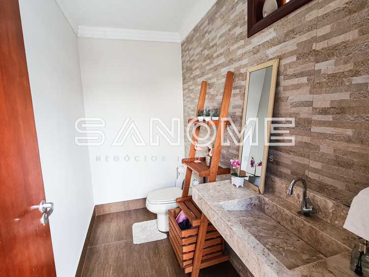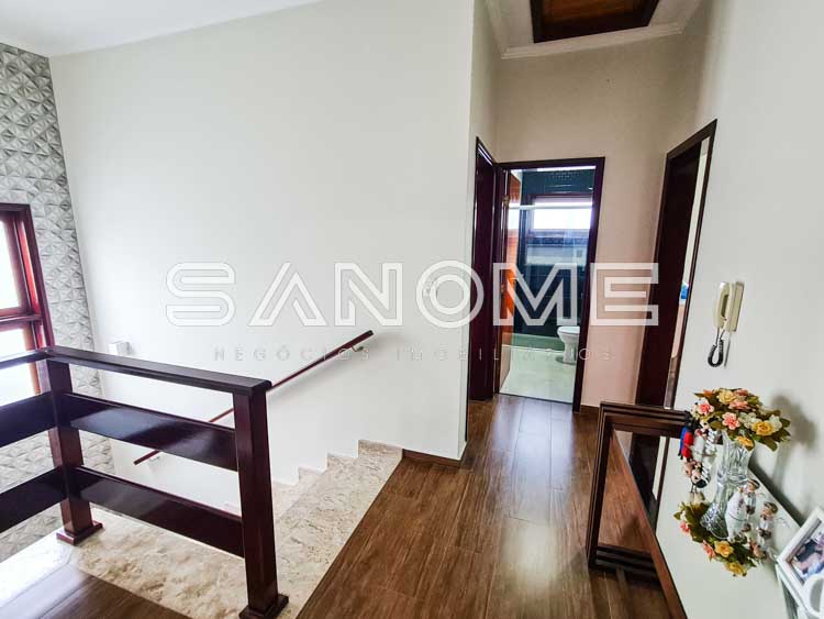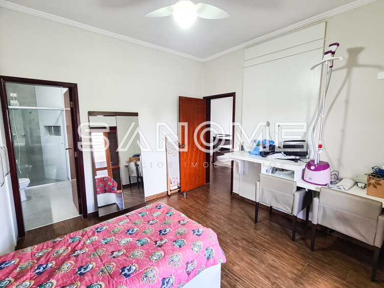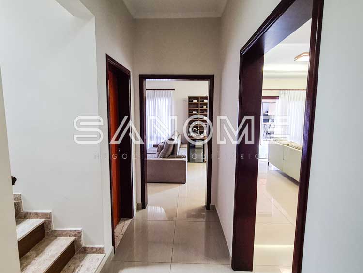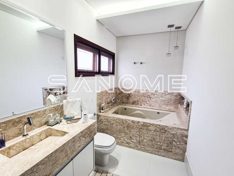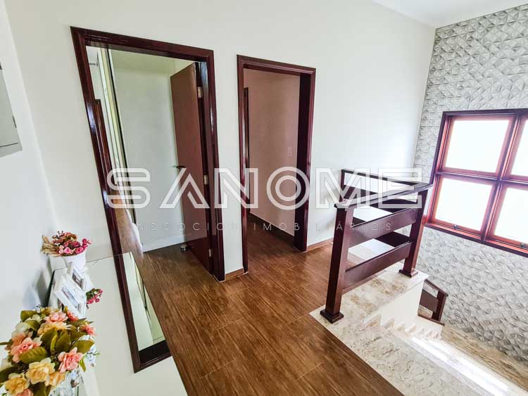 Piso superior: Banheiro social + 4 dormitórios (3 suítes – master com closet e hidromassagem).