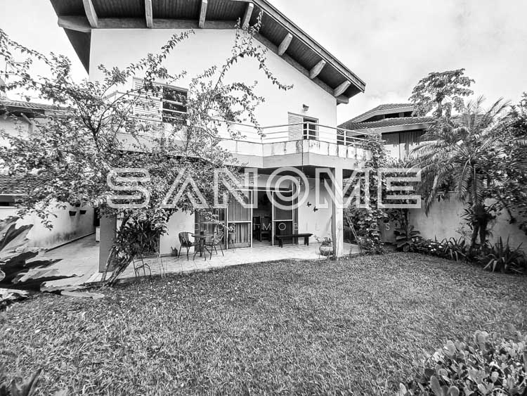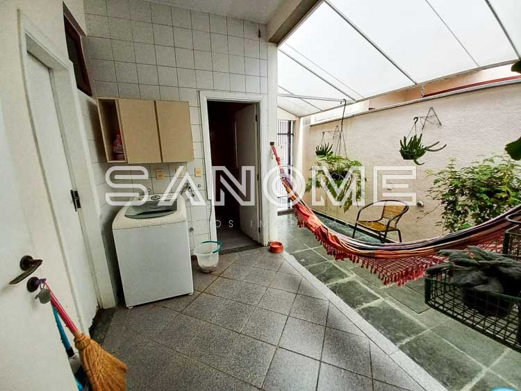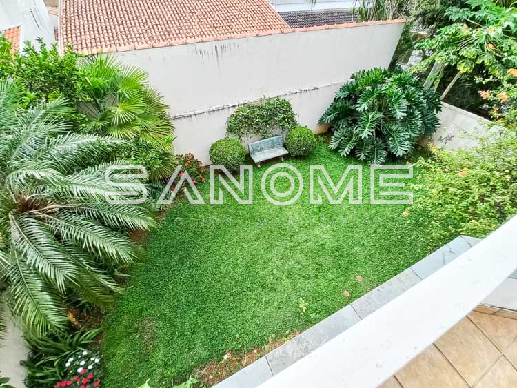 Piso térreo: Sala de estar, Sala de jantar integrada a área externa, Escritório/Sala de TV, Lavabo, Cozinha planejada, Área de serviço, Quartinho multiuso, Banheiro de empregados e Amplo quintal gramado.