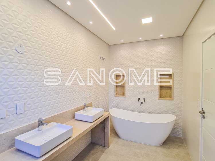Piso superior: Copinha, Sala de TV + 4 suítes (master com closet e banheira).