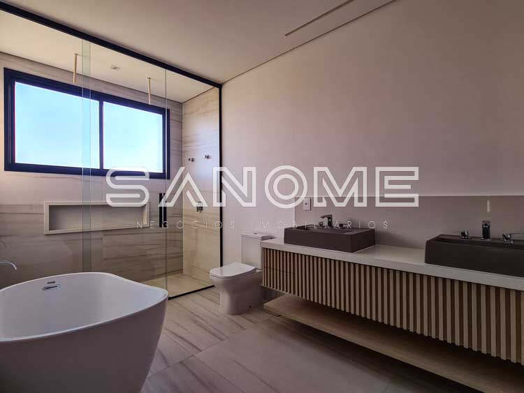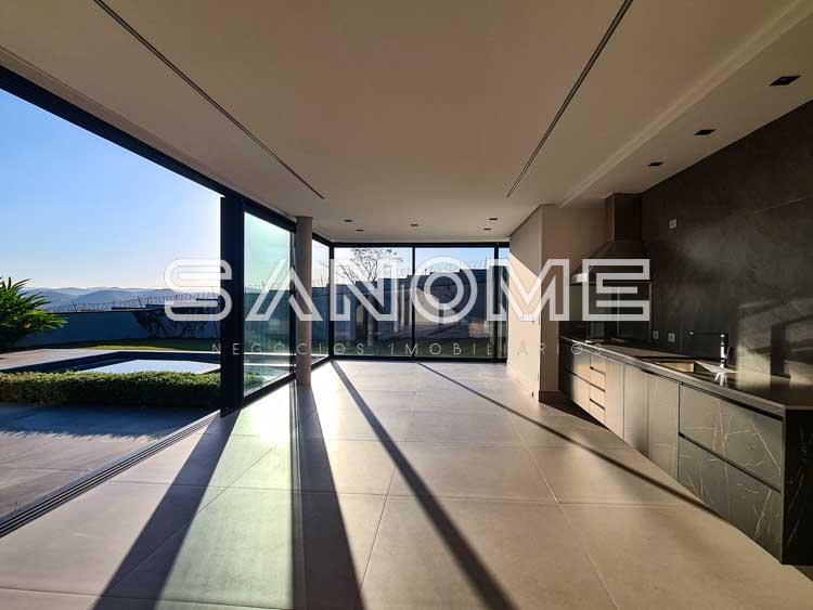 Térrea, 4 suítes com closet (1 máster com banheira de imersão), Salas de estar e jantar integradas, Elevador instalado, Lavabo, Cozinha integrada, Área de serviço, Despensa, Área gourmet, Banheiro de lazer com chuveiro, Piscina com spa, prainha e espelho d’água, Pátio externo com vista privilegiada para as montanhas, Amplo quintal gramado com entrada lateral, Amplo hobby box e Depósito multiuso.