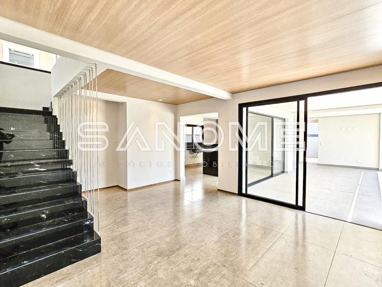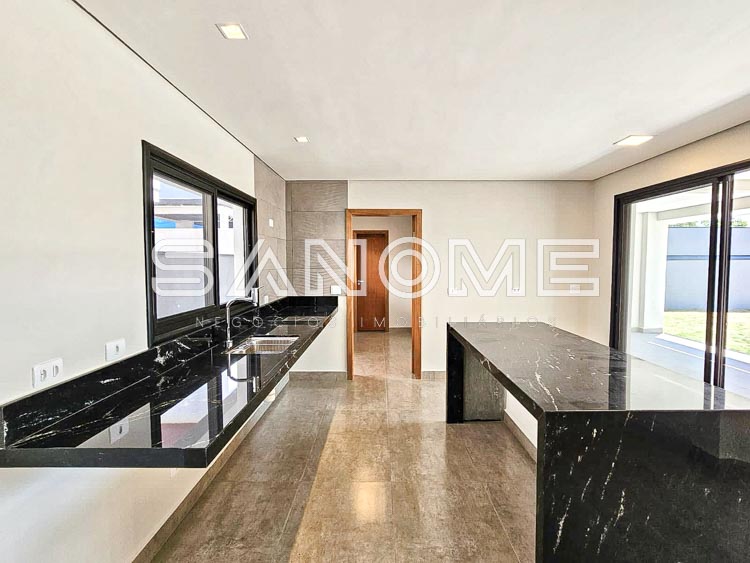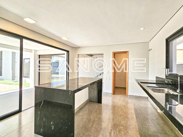 4 suítes com sacada (1 máster com closet), Escritório, Sala de TV, Banheiro social, Cozinha integrada, Sala 2 ambientes integrados, Despensa, Área de serviço, Área gourmet com churrasqueira e Banheiro externo.