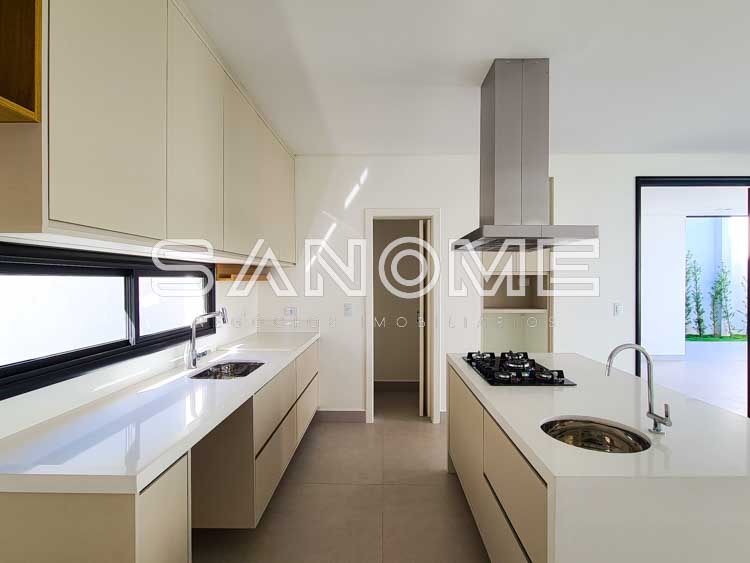 4 suítes (suíte máster com closet, hidromassagem e varanda com vista), Sala 2 ambientes, Escritório, Lavabo, Cozinha com despensa, Área de serviço, Área gourmet com churrasqueira, Banheiro externo com chuveiro, Piscina de alvenaria com SPA integrado (preparada para aquecimento) e Quintal com gramado.