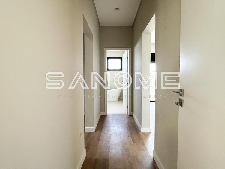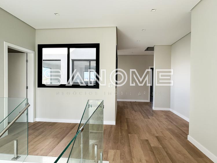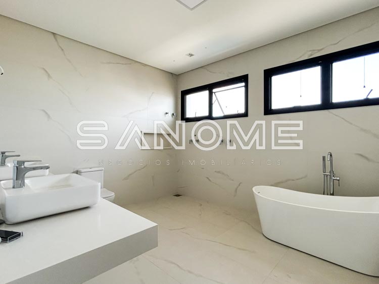 Piso superior: Corredor com espaço para roupeiro, Sala íntima com banheiro social e 4 suítes (master com closet e banheira).