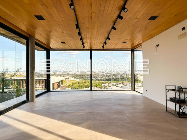 5 suítes (1 máster com closet e varanda verde + 3 superiores + 1 térrea), Área gourmet integrada com deck e piscina, Cozinha integrada com a sala, Despensa, Home cinema e Sunset lounge.