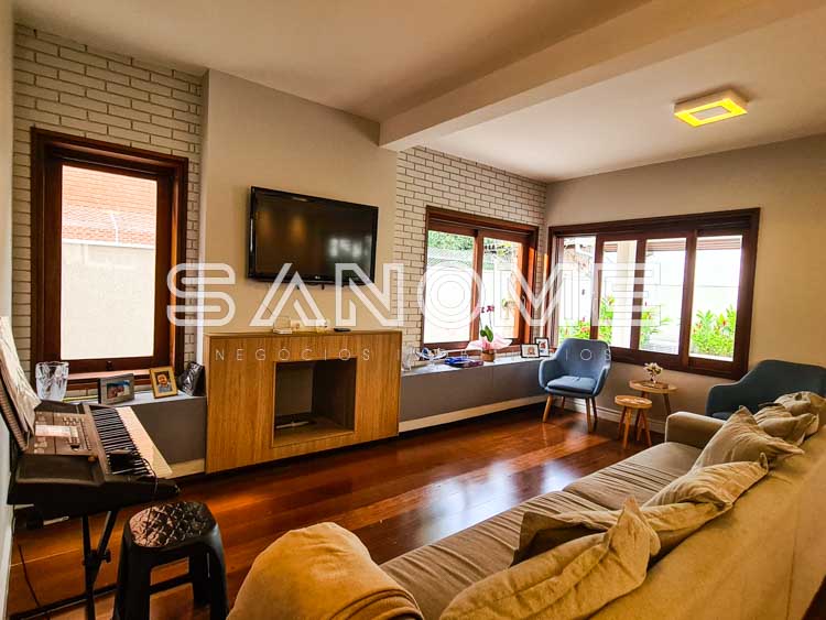 Piso superior: Sala íntima, Banheiro social + 3 dormitórios (1 suíte master).