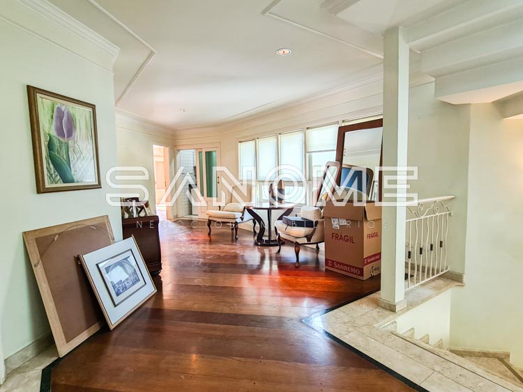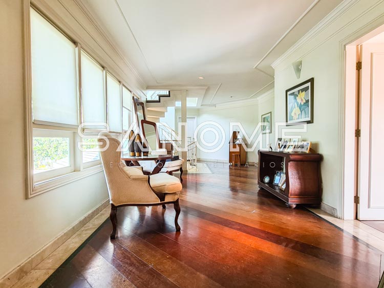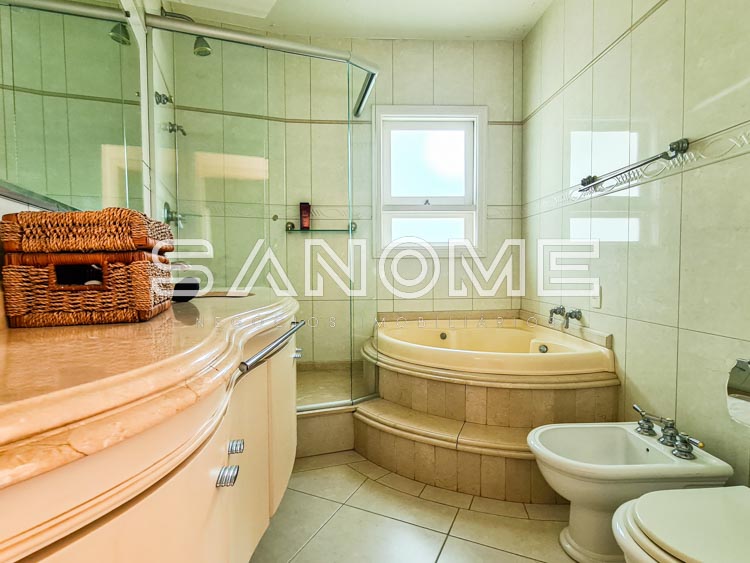4 suítes com closet e varanda externa (3 suítes com hidromassagem), Sala de estar com lareira, Banheiro social com chuveiro, Sala de jantar, Escritório com varanda externa, Sala de TV com acesso para área de lazer e churrasqueira.