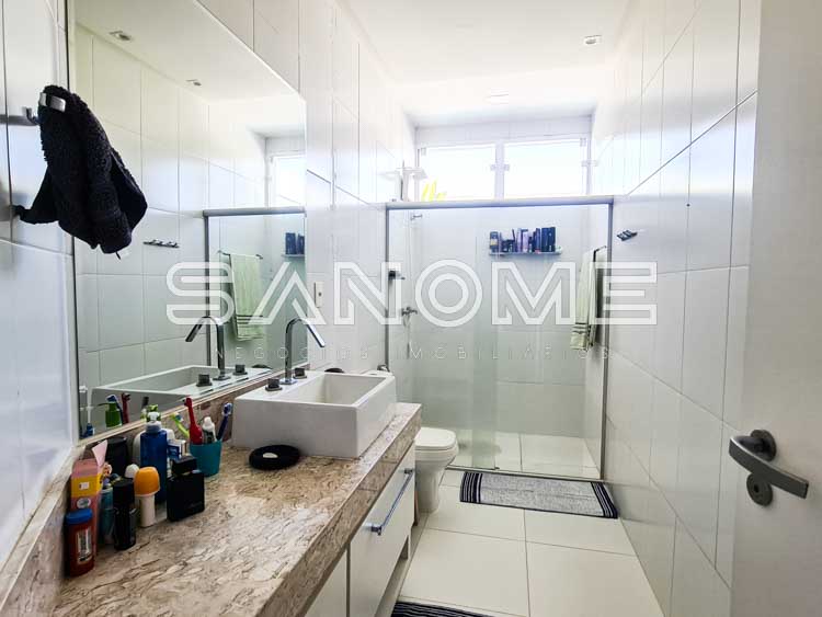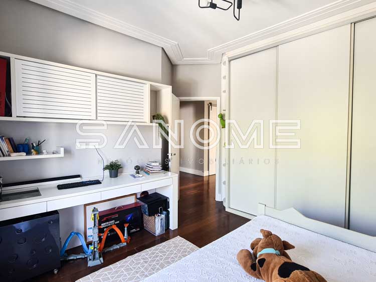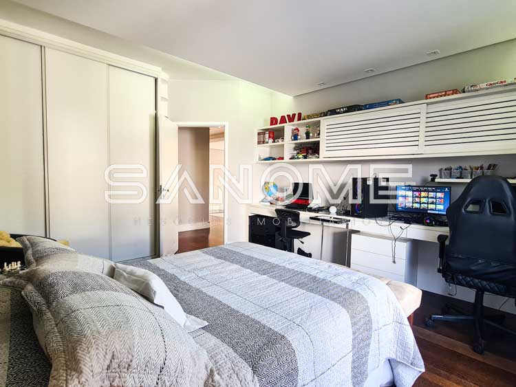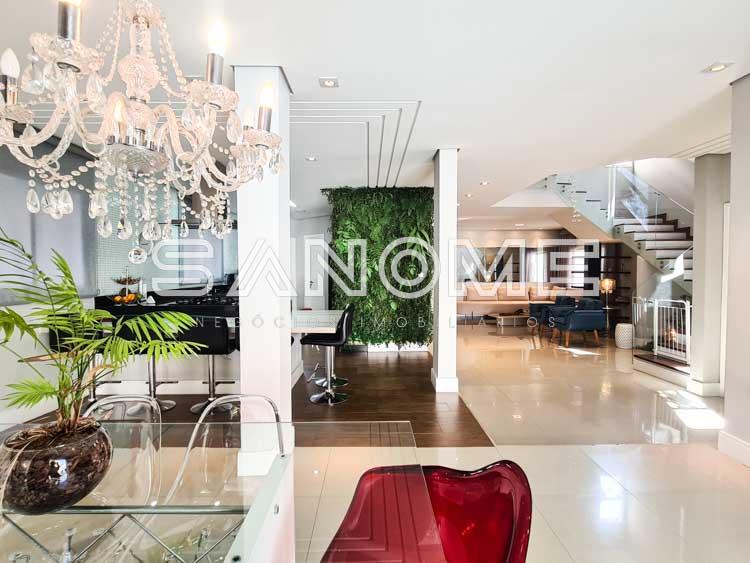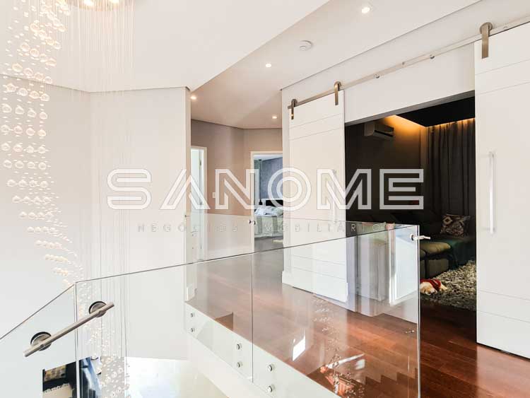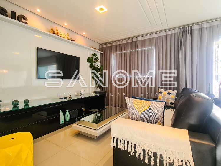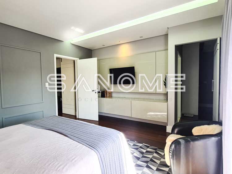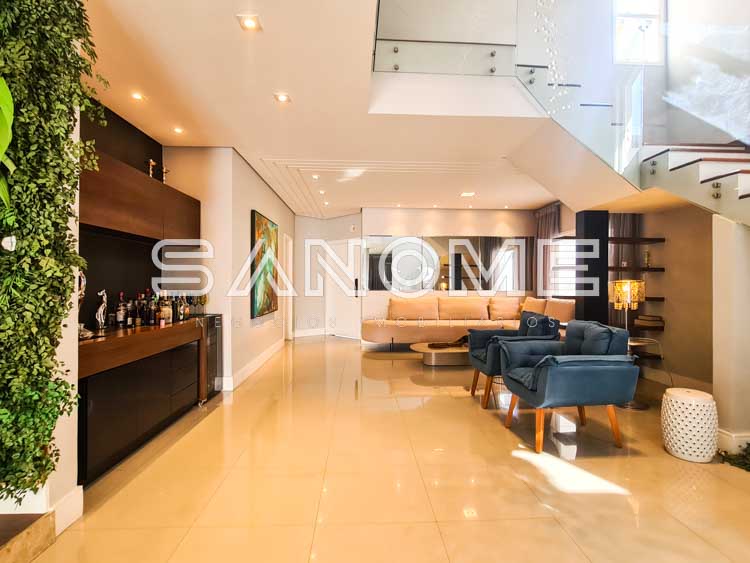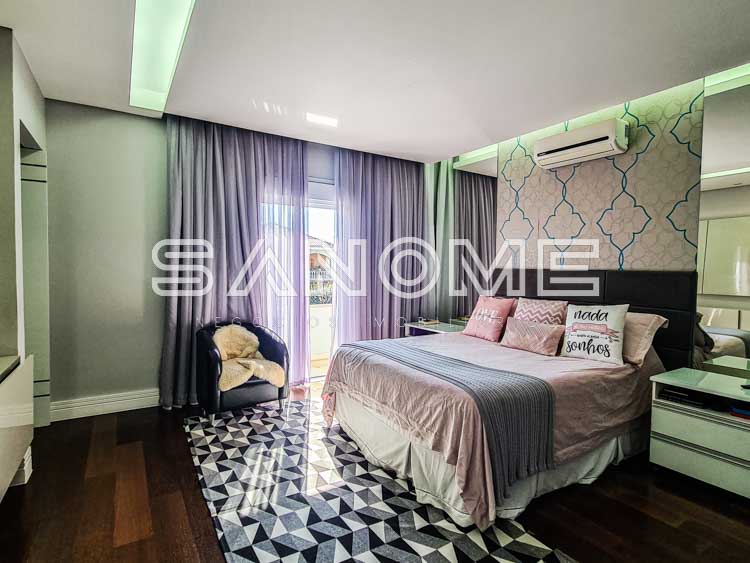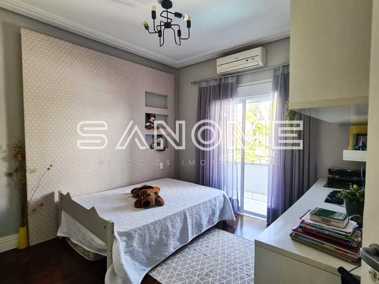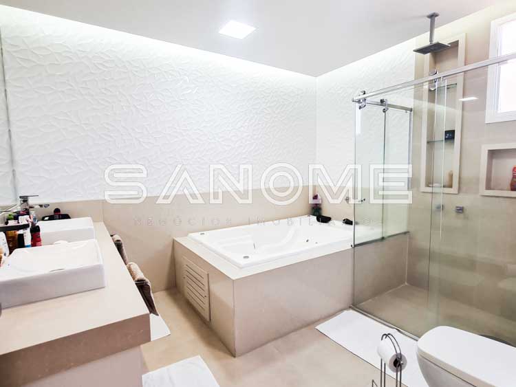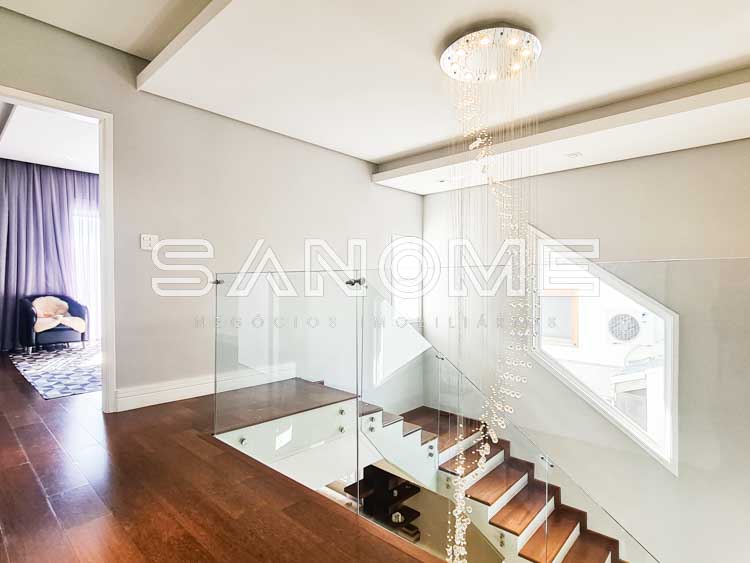 Piso superior: Sala de TV privativa, Banheiro social e 3 dormitórios (1 suíte master com closet e hidromassagem).