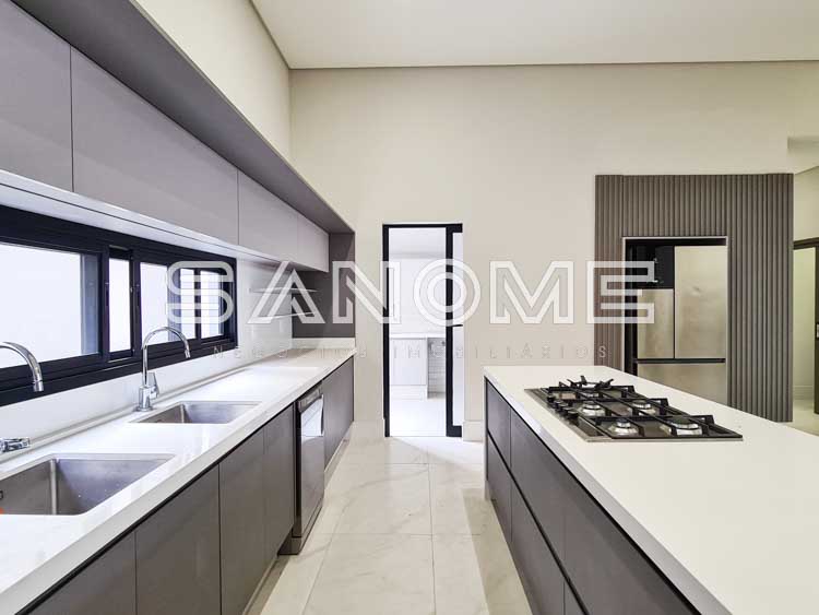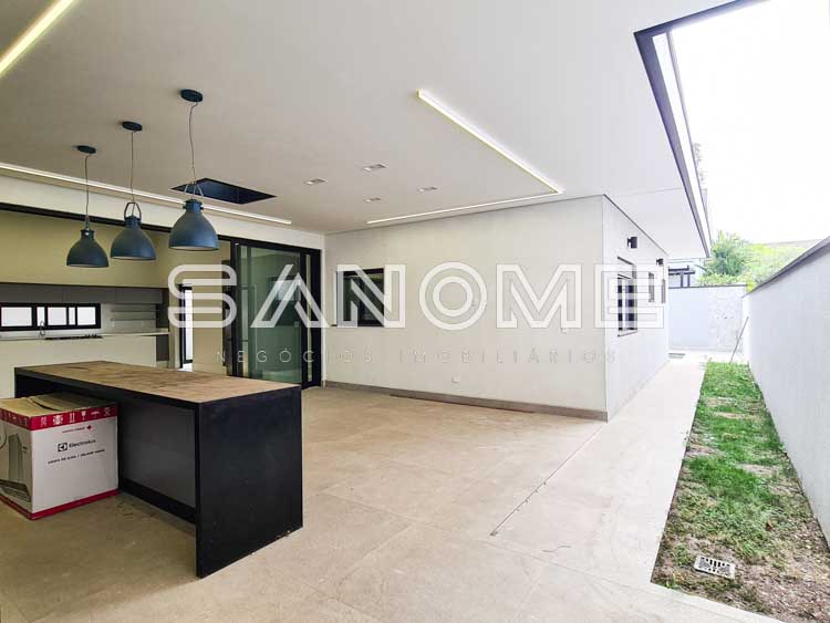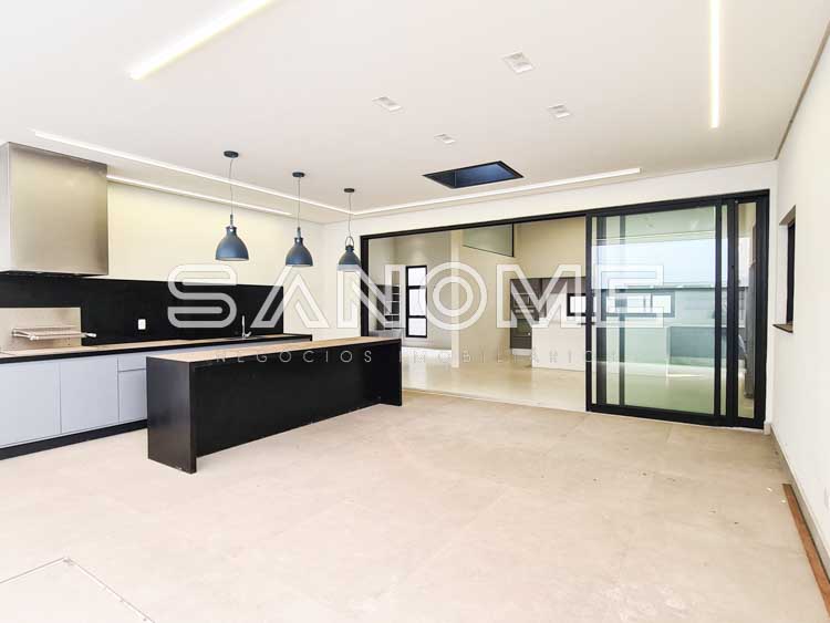 Térrea, 3 suítes (master com closet), Sala de jantar, Sala de TV, Lavabo, Jardim de inverno, Cozinha integrada, Despensa, Área de serviço, Escritório, Área gourmet integrada, Hobby box e Piscina.