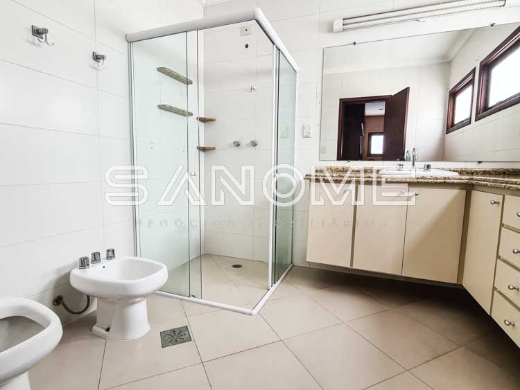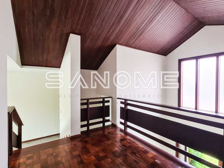 Piso superior: Sala de TV, Banheiro social e 4 dormitórios (2 suítes – 1 master com closet).