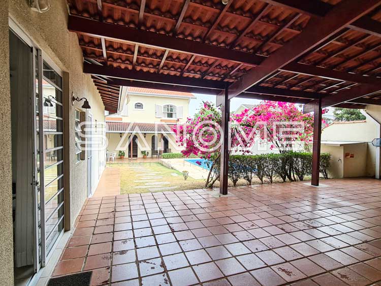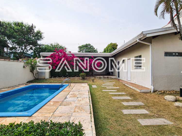 Piso térreo: Sala de estar, Sala de TV, Lavabo, Cozinha com copa, Despensa, Área de serviço, Quintal gramado, Piscina e Edícula.