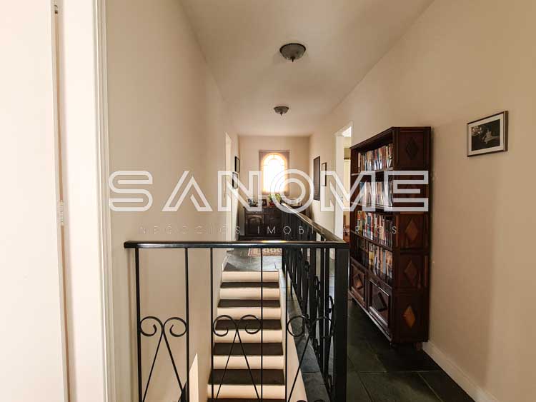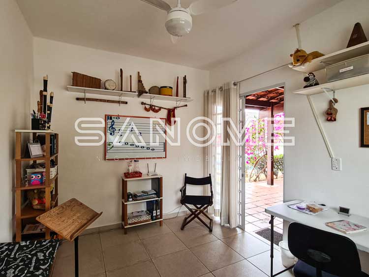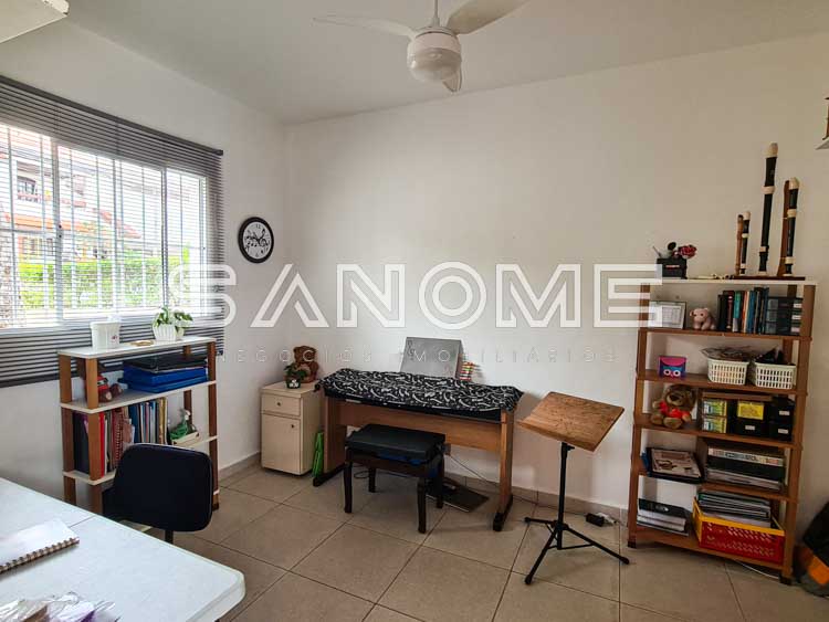 Piso superior: Banheiro social + 4 dormitórios (2 suítes e 1 dormitório sendo usado como escritório).