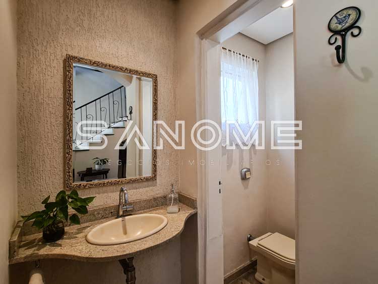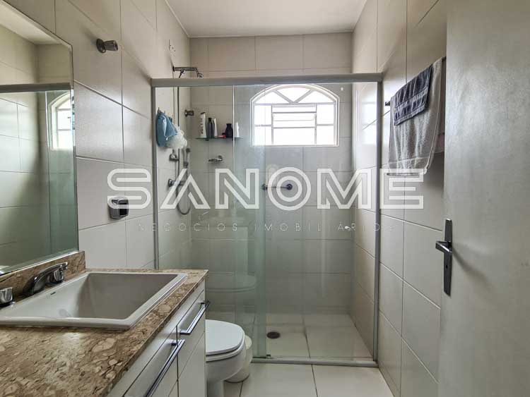 Piso superior: Banheiro social + 4 dormitórios (2 suítes e 1 dormitório sendo usado como escritório).