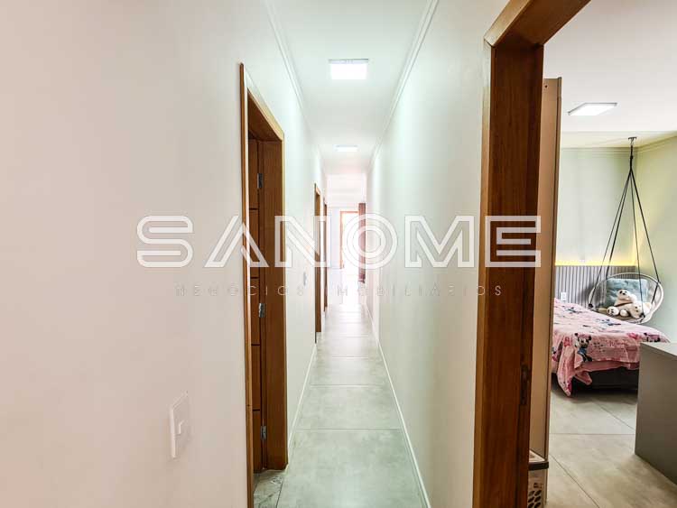 Térrea, 4 dormitórios (3 suítes – master com closet), Salas integradas, Lavabo, Cozinha integrada com armários, Área de serviço, Área gourmet com banheiro de lazer externo e Jacuzzi.