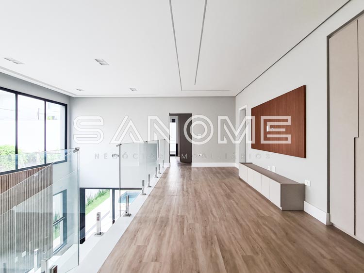 Piso superior: Sala de TV + 4 suítes (master com amplo closet e banheira).