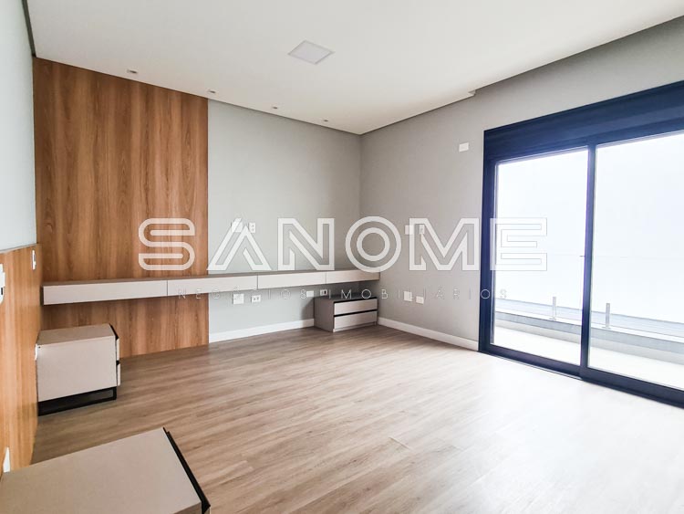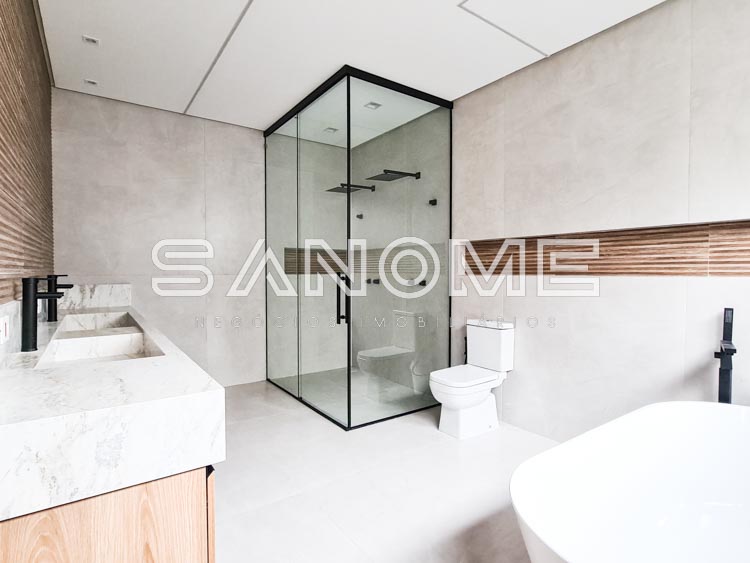 Piso superior: Sala de TV + 4 suítes (master com amplo closet e banheira).