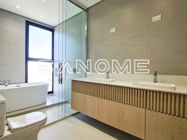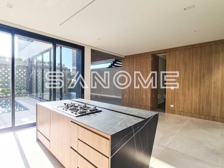 Paisagismo, Boiler e placas solares instaladas, Infraestrutura para ar condicionado, Infraestrutura para aquecimento da piscina, Iluminação e Gabinetes e armários dos quartos instalados. Arquitetura: Sonne Muller.