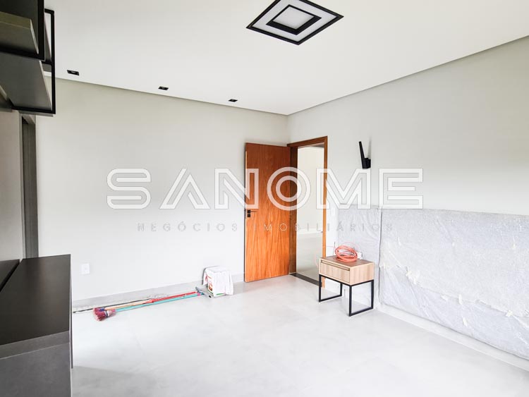 Térrea, 4 suítes (master com closet, banheira e escritório), Salas integradas, Lavabo, Cozinha gourmet com churrasqueira, Piscina com hidromassagem, Banheiro de lazer externo e Depósito.
