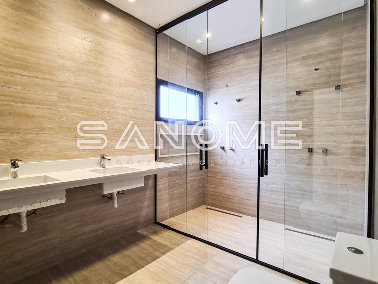 Piso térreo: Salas integradas, Lavabo, Sala de TV (reversível para escritório ou +1 suíte), Cozinha integrada, Área de serviço com banheiro, Despensa, Área gourmet, Banheiro de lazer externo, Depósito, Paisagismo e Piscina.