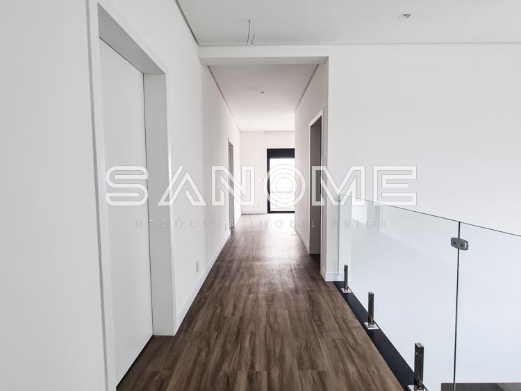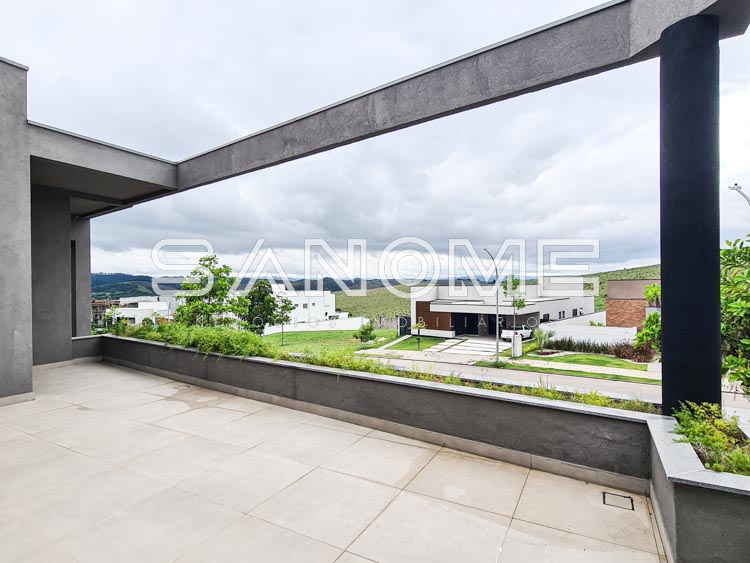 Piso superior: Sala íntima com ampla varanda externa, Sala de TV com varanda e 3 suítes (master com closet e acesso para a varanda frontal com vista livre).