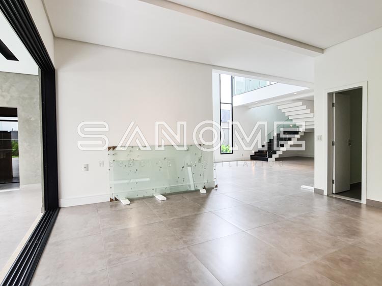 Piso térreo: Salas integradas, Lavabo, Sala de TV (reversível para escritório ou +1 suíte), Cozinha integrada, Área de serviço com banheiro, Despensa, Área gourmet, Banheiro de lazer externo, Depósito, Paisagismo e Piscina.