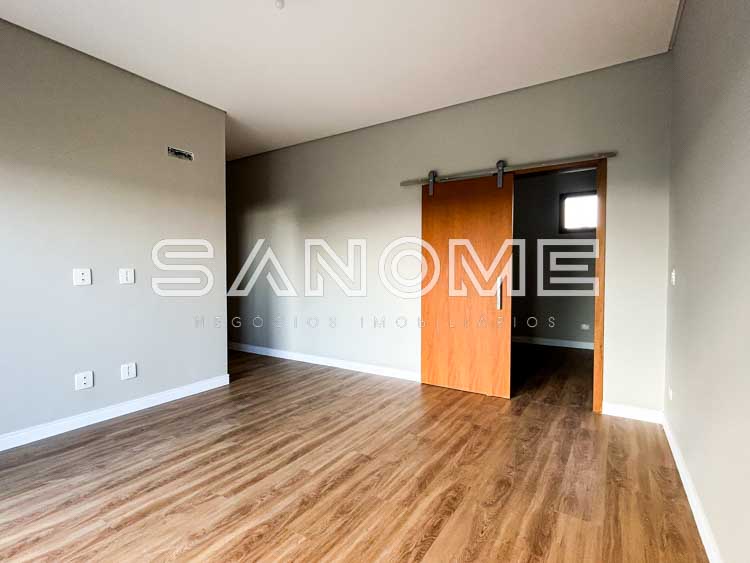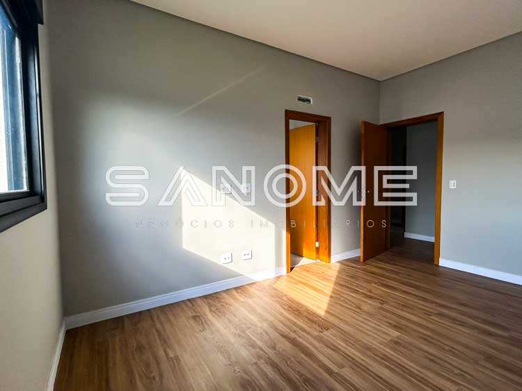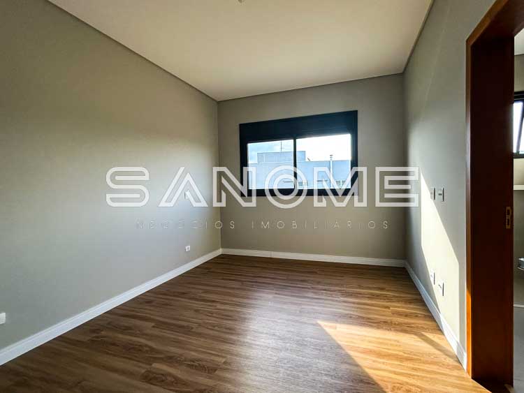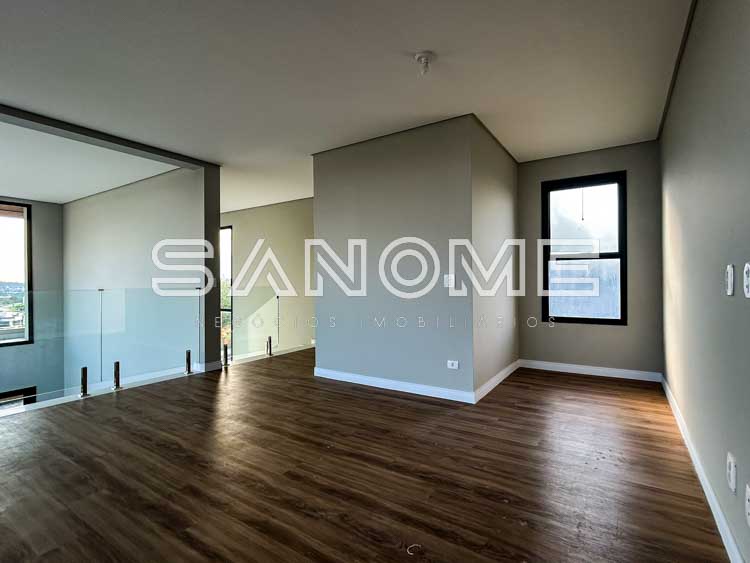 Piso superior: Ampla sala íntima com vista livre + 4 suítes (master com closet e banheira).
