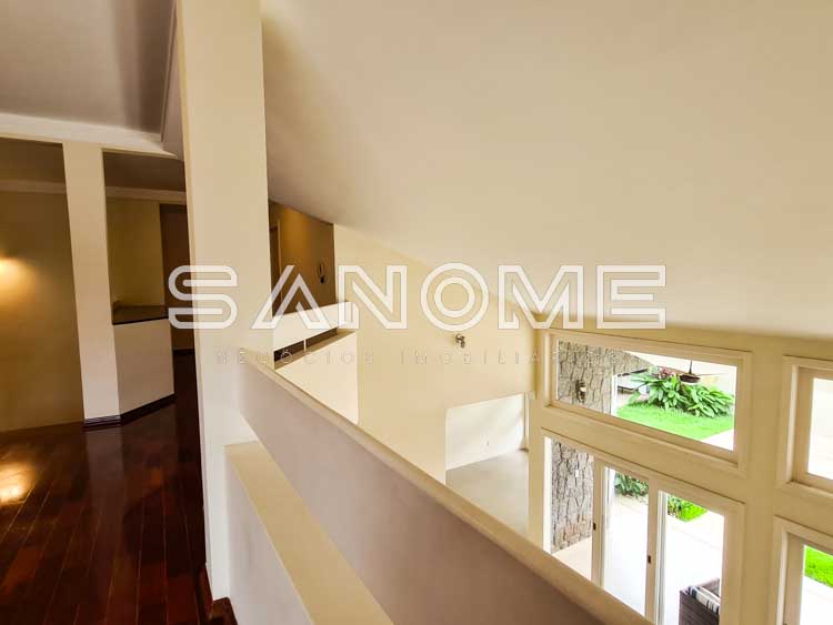 Piso superior: Sala íntima entre os quartos com varanda, Banheiro social, 1 dormitório + 3 suítes (master com closet e hidromassagem).