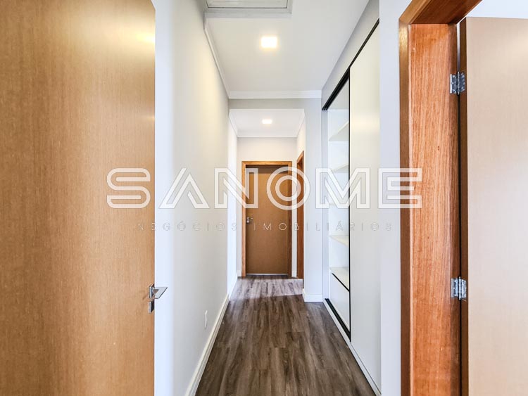Corredor com armários entre os quartos.