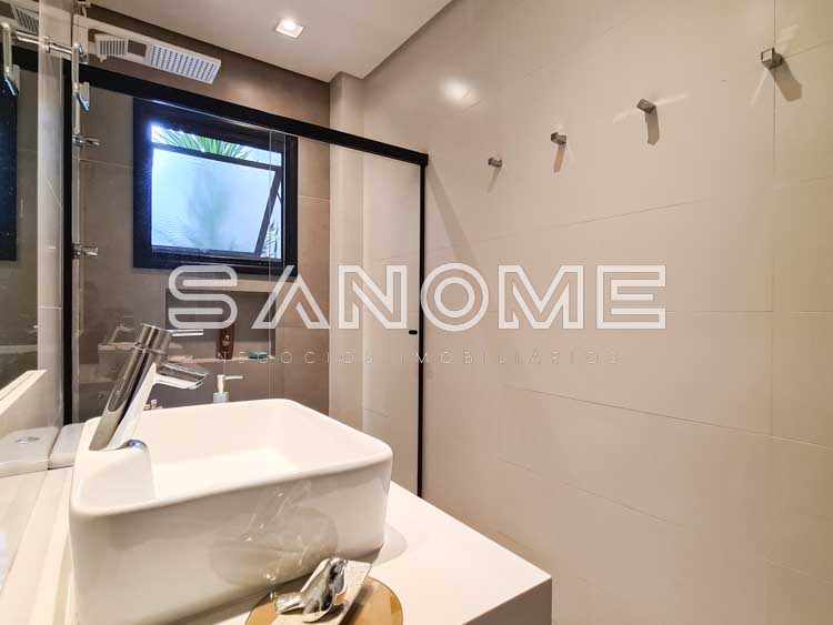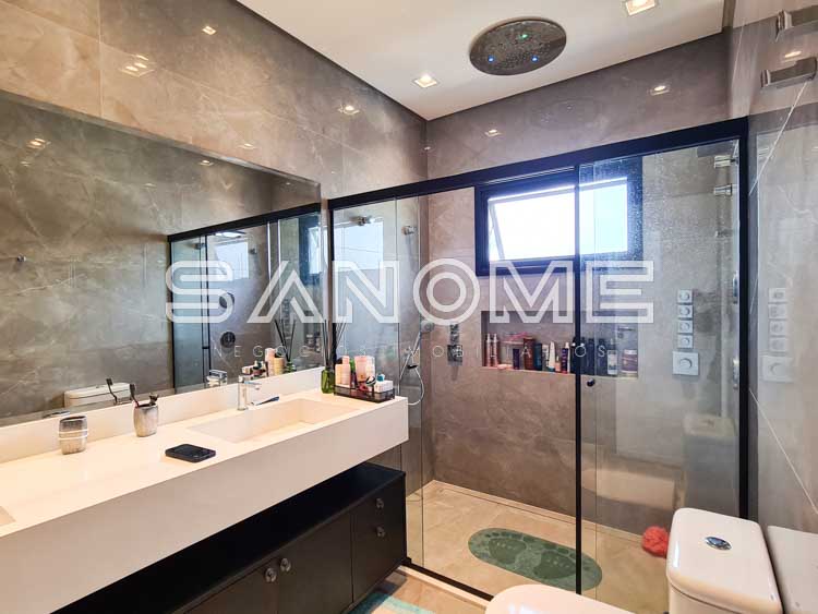 Cozinha completa com ilha, Área gourmet, Área de serviço, Despensa, Hobby box, Espaço na lateral com árvores frutíferas, Banheiro de lazer, Piscina com borda infinita, spa e sauna no piso inferior.