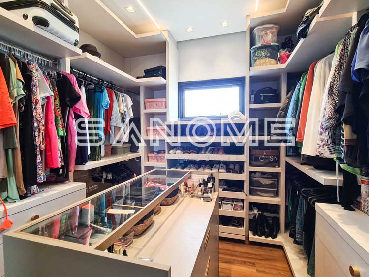 Cozinha completa com ilha, Área gourmet, Área de serviço, Despensa, Hobby box, Espaço na lateral com árvores frutíferas, Banheiro de lazer, Piscina com borda infinita, spa e sauna no piso inferior.