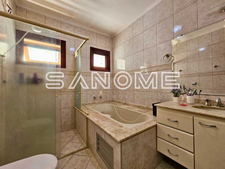 Piso superior: 3 suítes (master com closet e hidromassagem).
