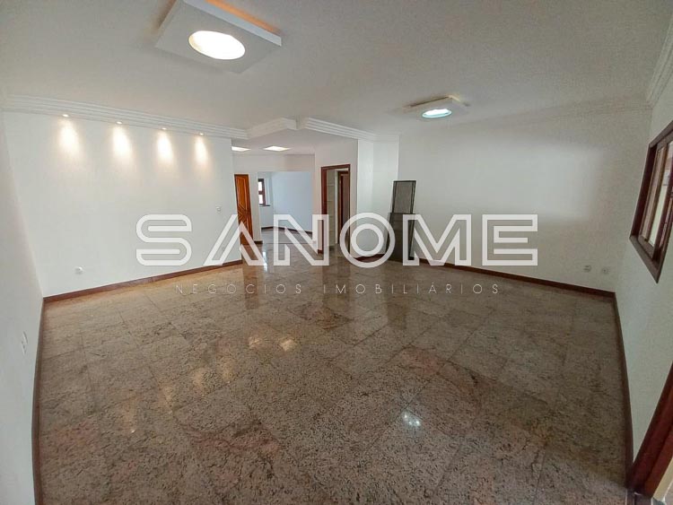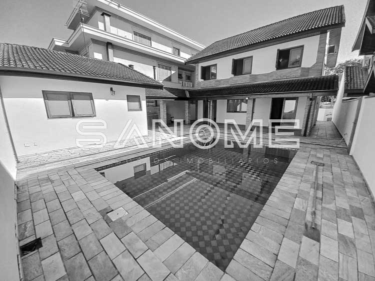 Piso térreo: Sala 2 ambientes integrados, Sala de TV, Lavabo, Cozinha planejada, Área de serviço, Banheiro e quarto de empregados, Ampla varanda externa, Área gourmet completa e Piscina.