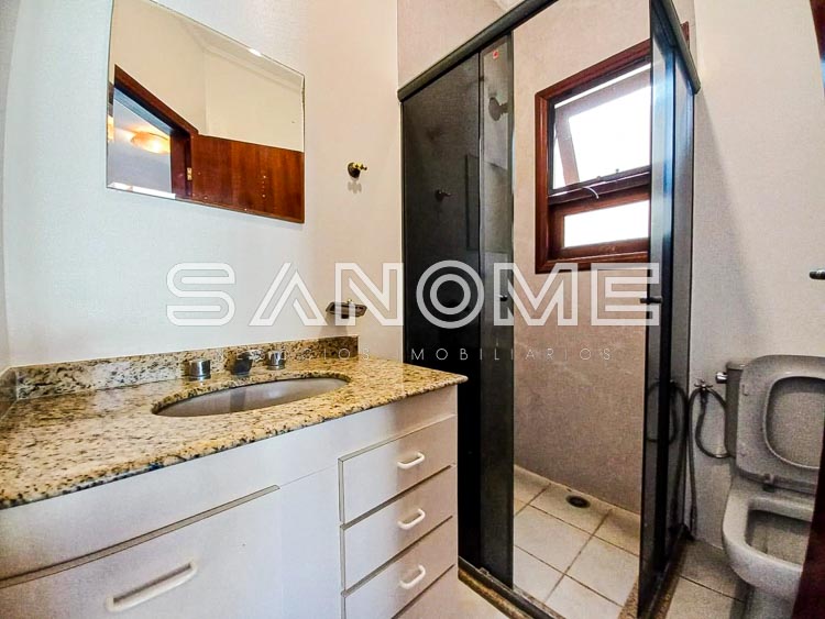 Piso superior: Banheiro social + 4 dormitórios (2 suítes – master com closet e banheira).