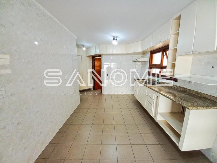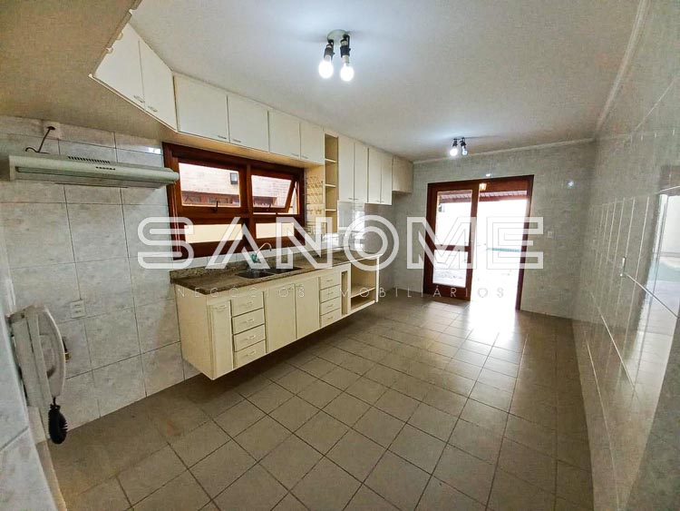 Piso térreo: Sala 2 ambientes integrados, Sala de TV, Lavabo, Cozinha planejada, Área de serviço, Banheiro e quarto de empregados, Ampla varanda externa, Área gourmet completa e Piscina.