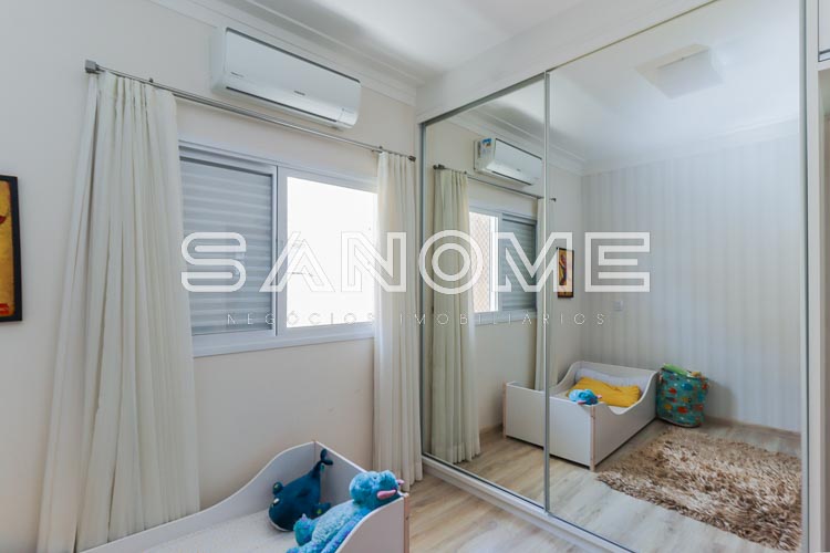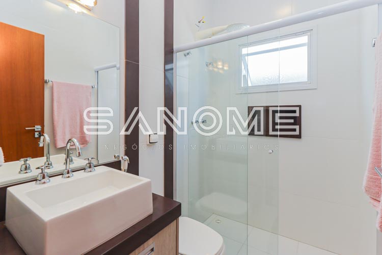 4 dormitórios (2 suítes – suíte máster com closet, sacada e banheira), Banheiro social, Sala 2 ambientes, Sala de TV, Lavabo, Cozinha com despensa, Área de serviço, Banheiro externo, Área gourmet e Quintal com ducha.