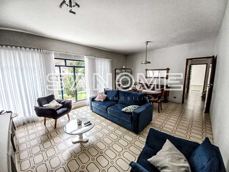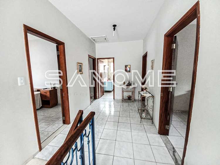 4 dormitórios (2 suítes), Banheiro social, Sala de estar, Sala de jantar, Lavabo, Escritório, Cozinha com copa, Despensa, Área de serviço, Suíte de empregados, Quartinho multiuso, Amplo quintal com piscina e área coberta, Churrasqueira e Piscina.