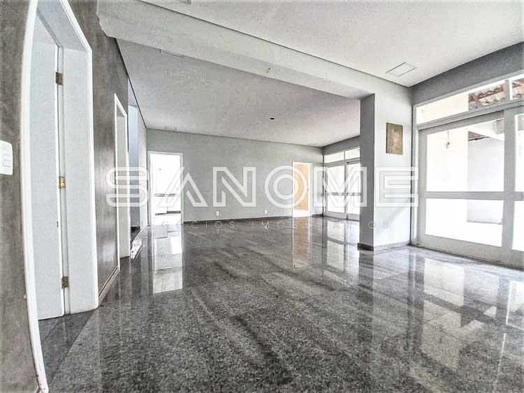 4 dormitórios (2 suítes), Banheiro social, Salas integradas, Lavabo, Sala de TV, Escritório, Ampla cozinha com copa e sala de almoço, Despensa, Área de serviço, Banheiro e quarto de empregados, Espaço para área gourmet, Banheiro externo e Imenso quintal gramado com espaço para construção de piscina.