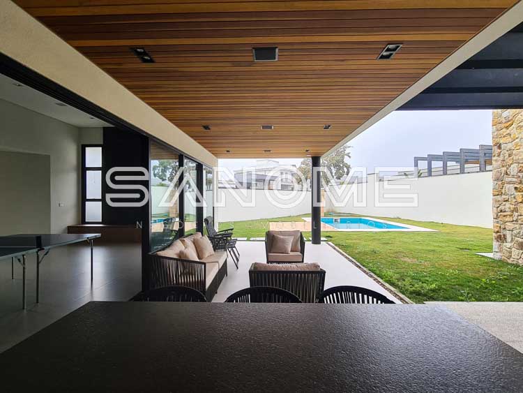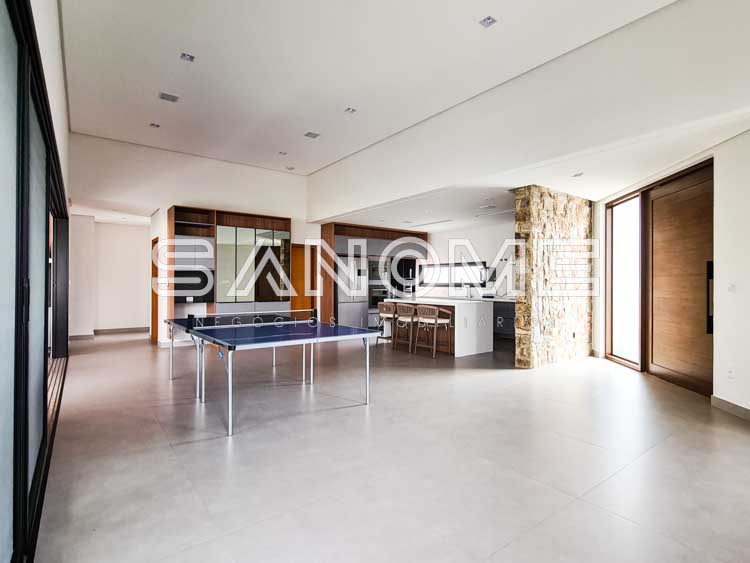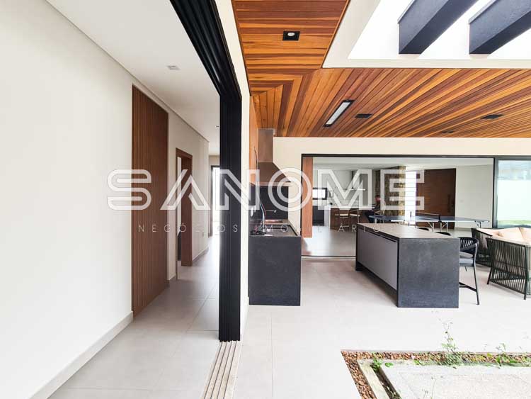 Térrea, 4 suítes (suíte máster com closet), Salas integradas, Pé direito duplo, Lavabo, Cozinha integrada, Despensa, Área de serviço, Área gourmet com churrasqueira, Banheiro externo, Amplo quintal gramado e Piscina preparada para aquecimento.
