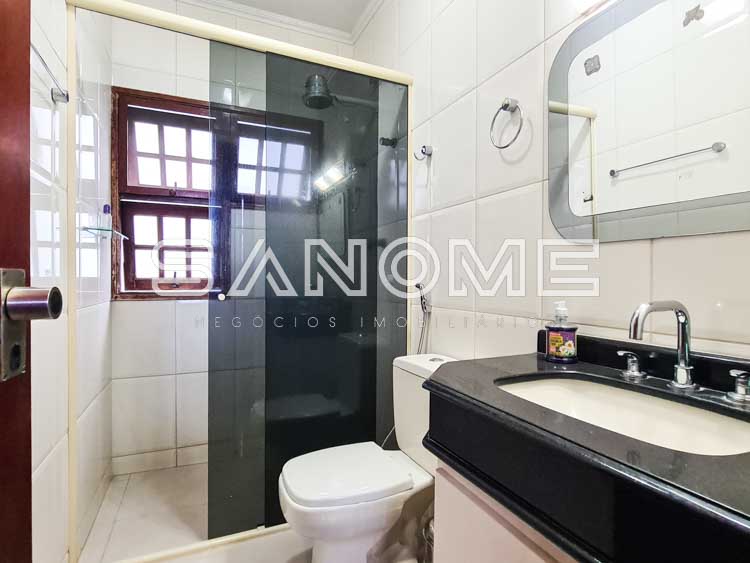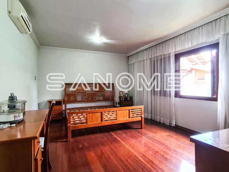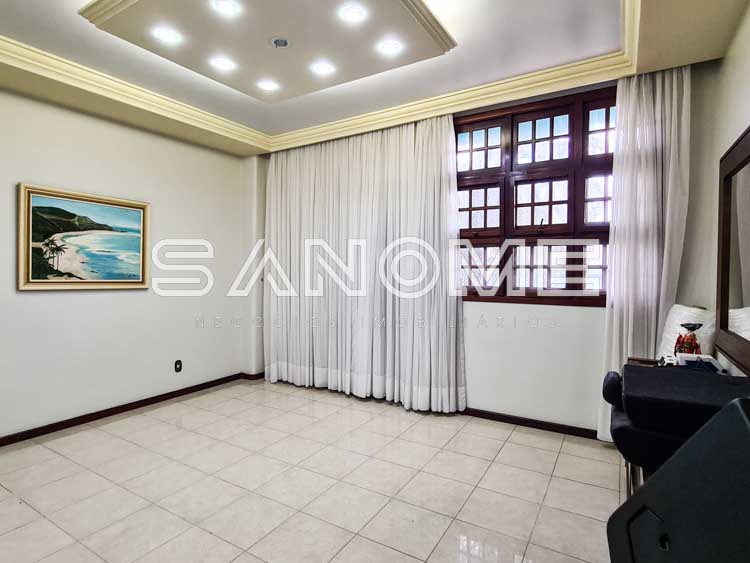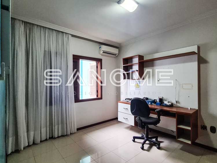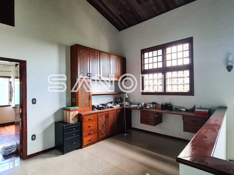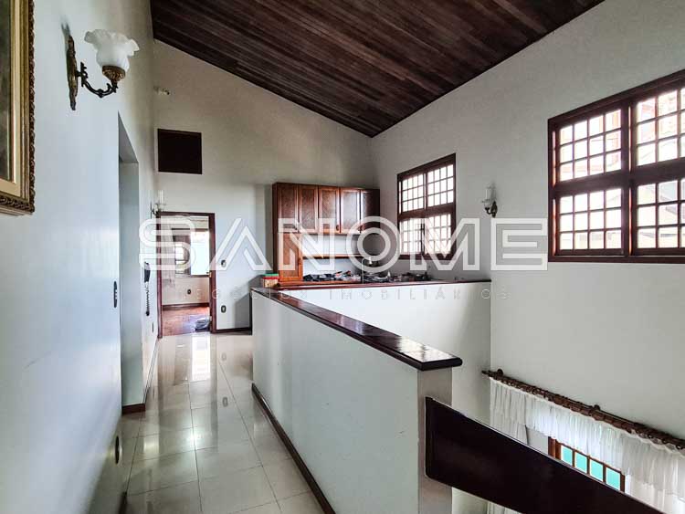 Piso superior: Sala íntima (sendo usada como escritório), Banheiro social e 4 dormitórios (2 suítes com closet – master com hidromassagem).