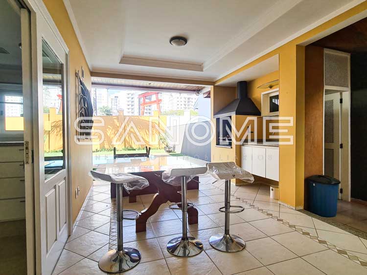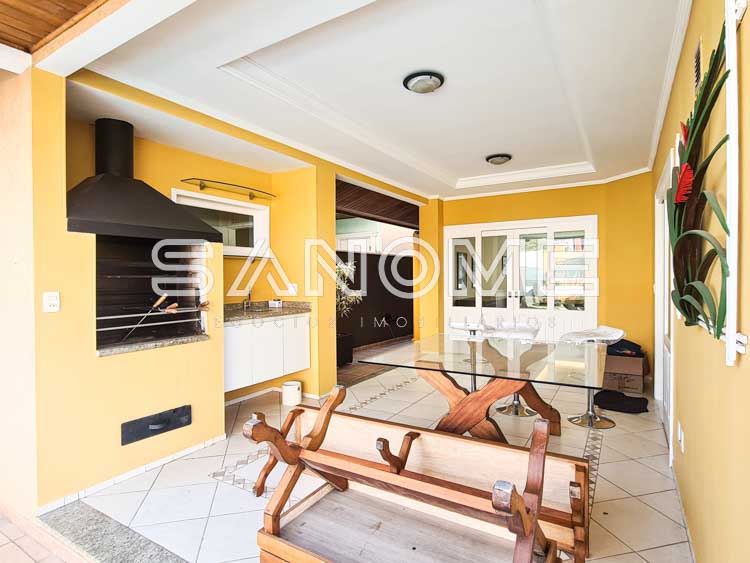 Cozinha planejada com copa (eletrodomésticos inclusos), Área de serviço com máquina de lavar, Hobby box, Área de churrasqueira integrada à sala e cozinha, Banheiro externo com chuveiro, Amplo quintal gramado e Piscina.