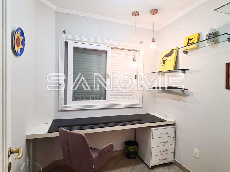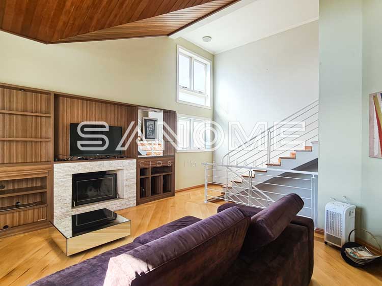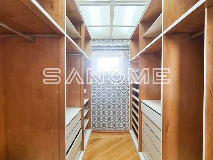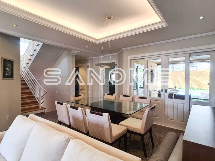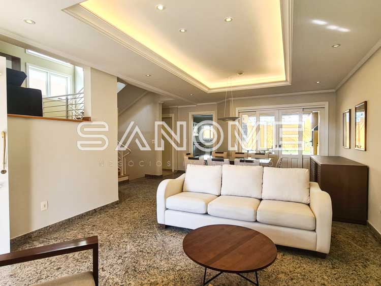3 suítes (suíte máster com closet e hidromassagem), Sala de estar, Sala de jantar, Lavabo, Escritório e Ampla sala de TV com lareira (TV inclusa).
