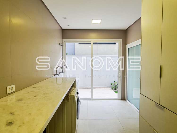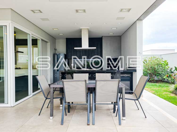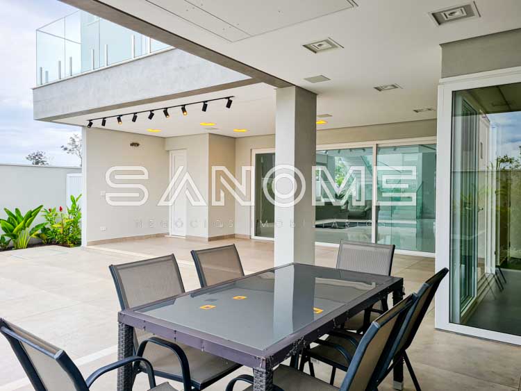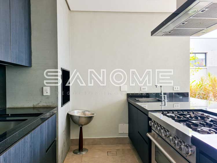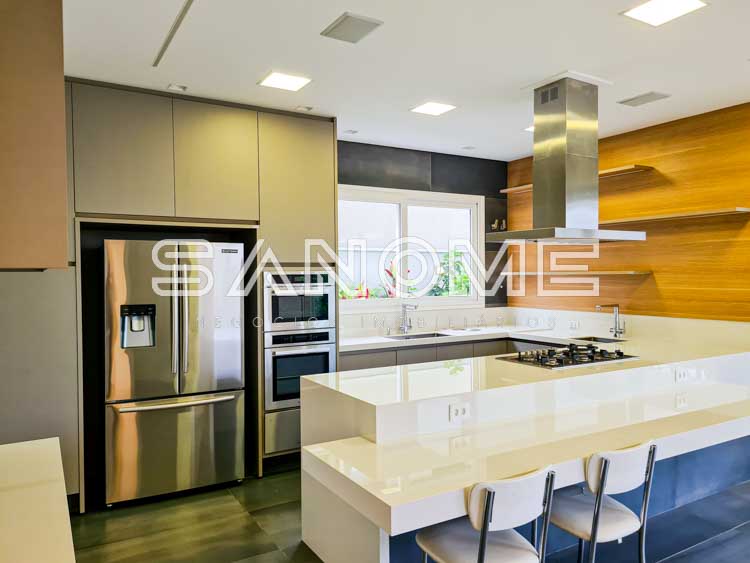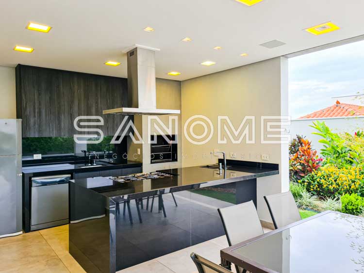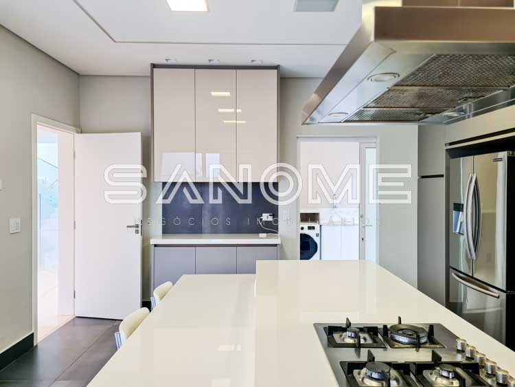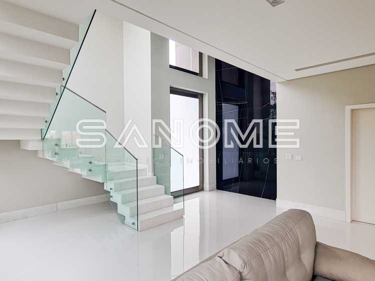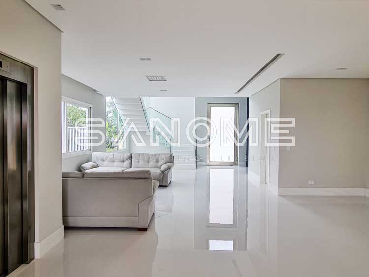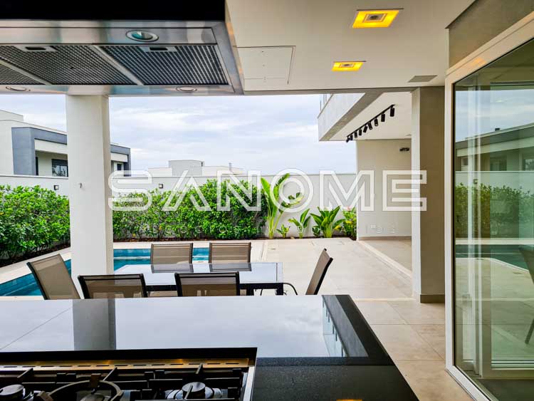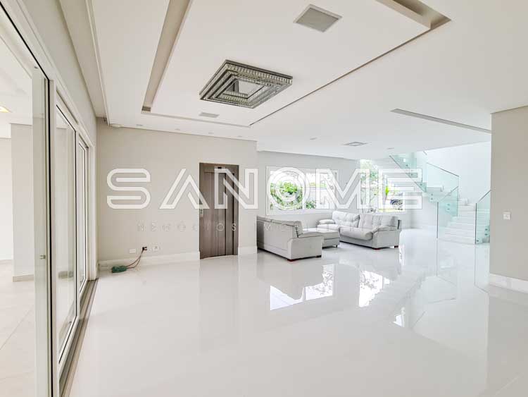 Piso térreo: Salas integradas, Elevador, Lavabo, Hall de entrada com pé direito duplo, Cozinha planejada (eletrodomésticos Elettromec), Ampla área de serviço com depósito e despensa, Área gourmet completa (com fogão Elettromec e telão retrátil), Banheiro social de lazer externo, Varanda externa e Piscina.