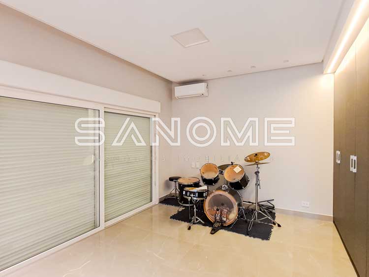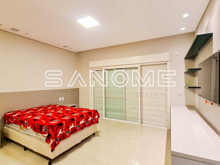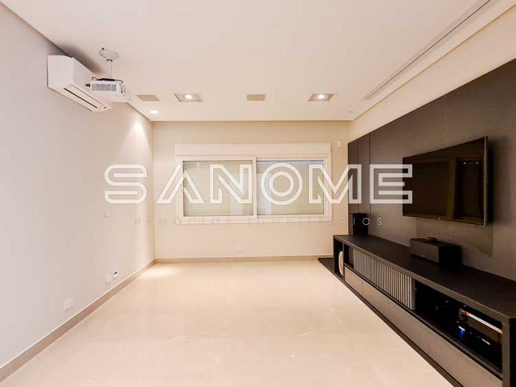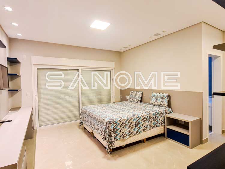 Piso superior: Amplo Home Theater + 4 suítes completas.