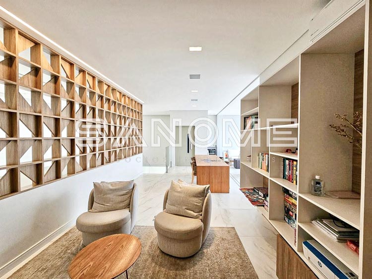 Elevador com parada em todos os pisos, Ar condicionado em todos os ambientes, Automação completa, Cisterna para coleta de água da chuva, Semi-mobiliada, Caixas de som a prova d’água, Aspiração central com ponto de coleta na garagem, Todas as pedras em silestone e Banheiros das suítes com piso aquecido.