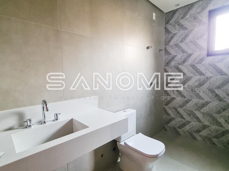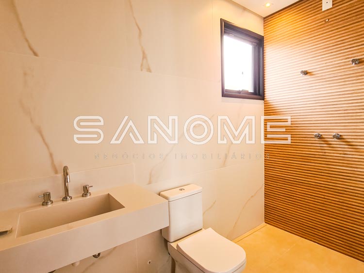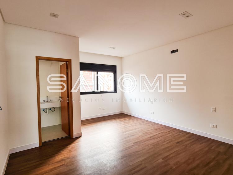 Piso superior: Sala íntima com varanda + 4 suítes (master com closet e hidromassagem).